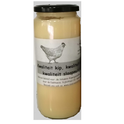 Deze eierlikeur is gemaakt van de eerste eieren van onze nieuwe kippen, dit zijn kleine zeer smakelijke eieren en dat is in de likeur ook te proeven.